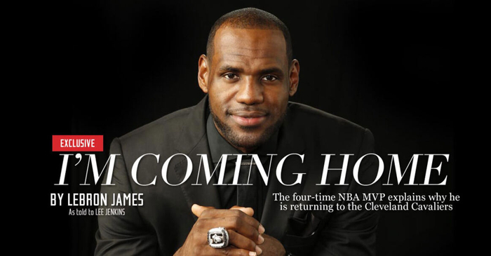 2014年7月11日,詹姆斯通过《体育画报》发布了一篇名为《我要回家了》(I'm Coming Home)的署名长文,正式宣布重返骑士。
